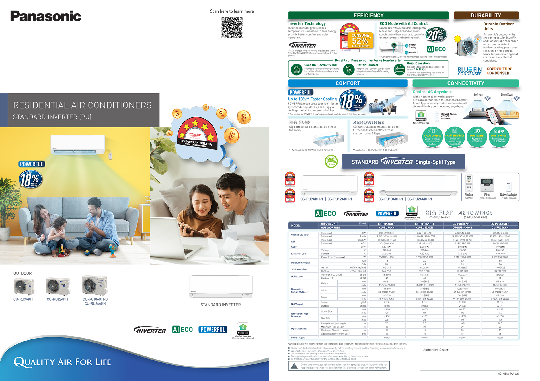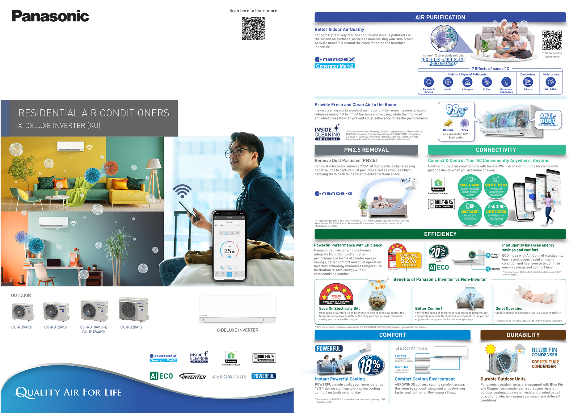 Get quality air using PANASONIC with NANOE technology and built-in independent air purifier with only 25W per hour! Get a better life with control at Home/Away!